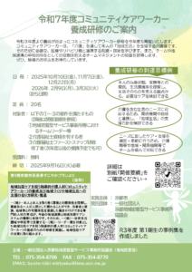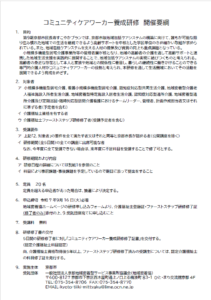 地域包括ケアシステムの構築に資する中核的介護人材の育成するため、京都市の委託によりコミュニティケアワーカー養成研修を開催いたします。
